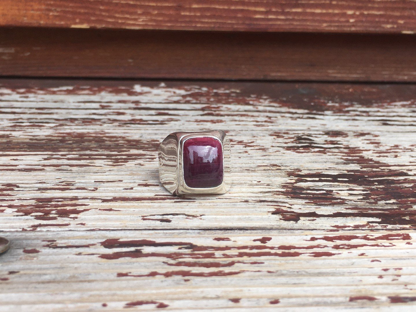 Tento prsteň s prírodným rubínom v striebre 925/1000 bol vyrobený ručne v našej dielní, s použivanim tradičných klenotnických technik, bez použivania polotovarov.